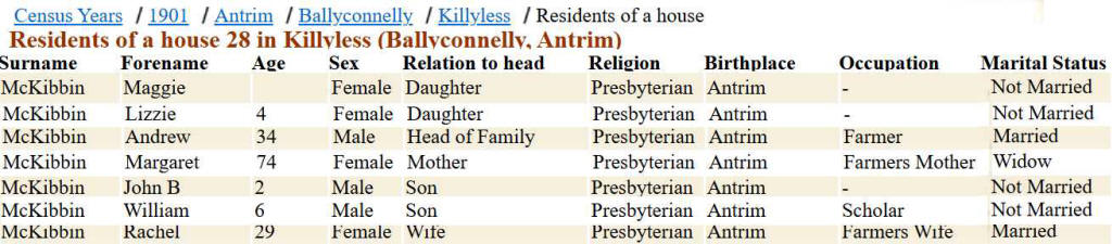 17 Aug 1869 Ahoghill, Ballymena, County Antrim Killyless Ahoghill, Ballymena |