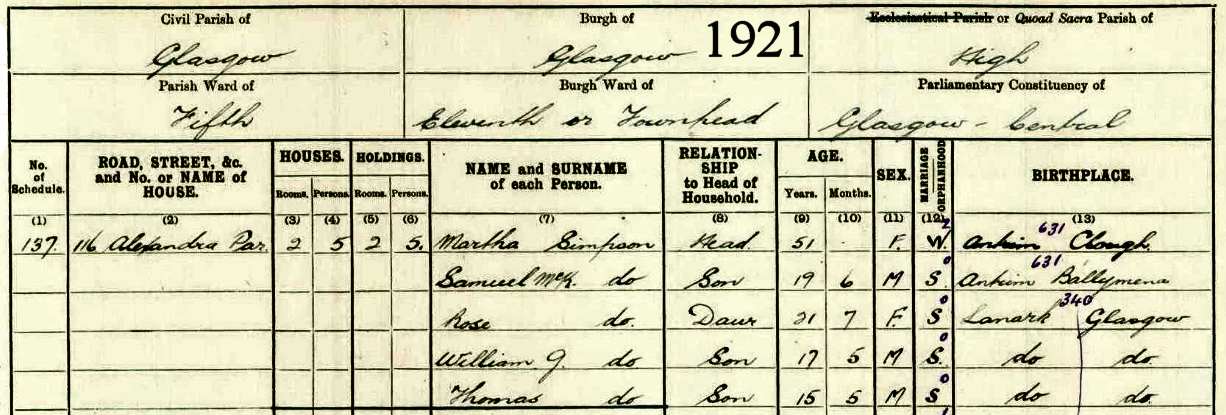 | Rose Simpson | 1900 Glasgow, Lanarkshire, Scotland |