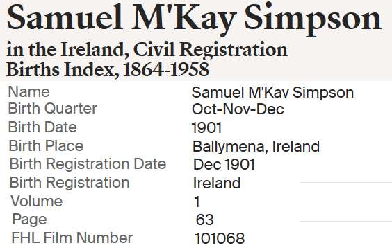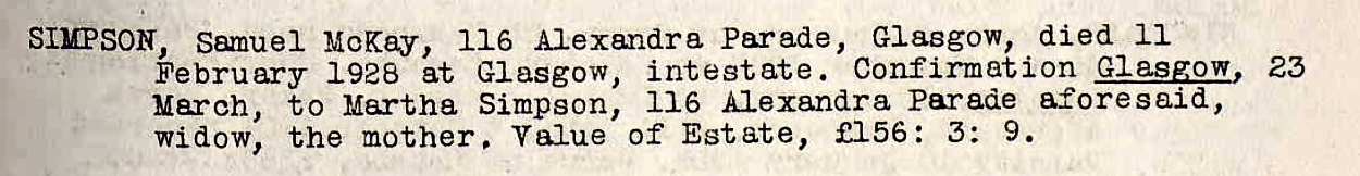 | Samuel McKay Simpson | Dec 1901 | 1928 Glasgow, Lanarkshire, Scotland |