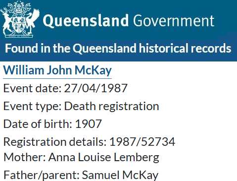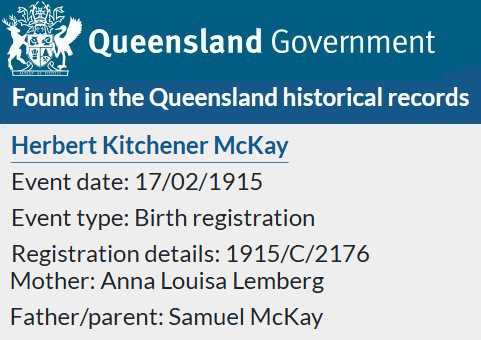 | Herbert Kitchiner McKay | 17 Freb 1915 | 1 May 1987