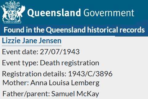 | Lizzie Jane McKay | 21 Sep 1908 | 27 Jul 1943