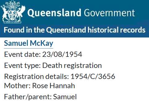 | Samuel Ludwig McKay | 2 Dec 1904 | 13 Jun 1982