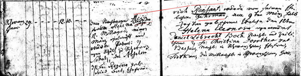 Birth Record - Helena Eleanore Renfant Thiensdorf and Neuheide Records