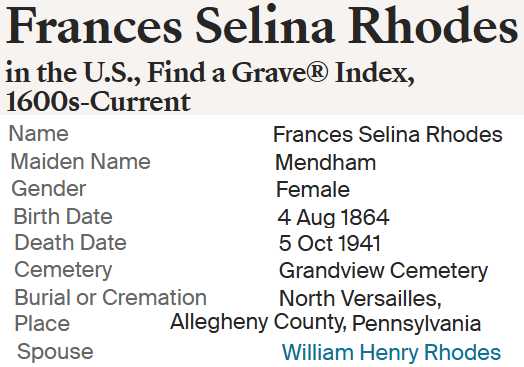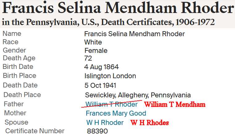 | Frances Selina Mendham | 6 Aug 1864 | 10/05/1941
