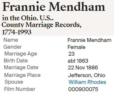 | Eliza Ann Mendham | 21 Jul 1863 | Sep 1948