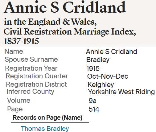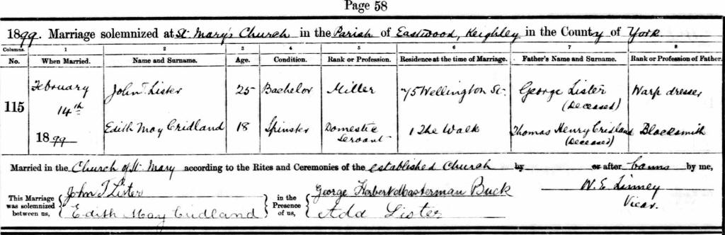 Married: 1899 Died 1937, Keighley, Yorlshire (1873-1937)