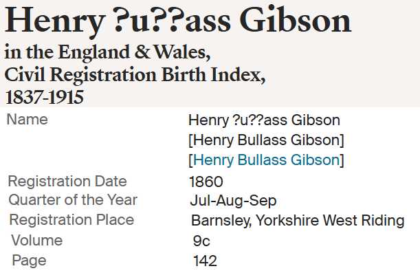 | Henry Bullass Gibson | Sep 1860 Worsborough, Yorkshire, England |