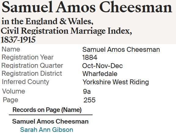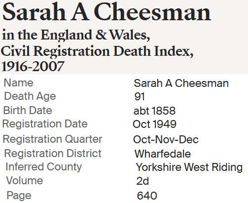 | Sarah Ann "Sally" Gibson | DEC 1858 Worsborough, Yorkshire, England |