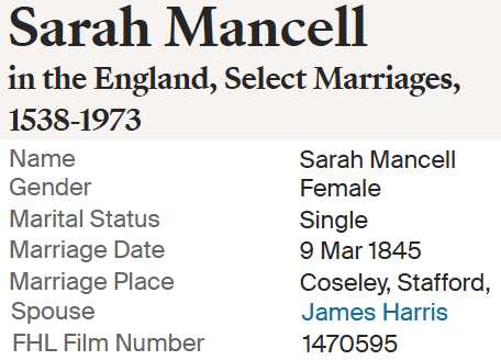 | 2 | Hannah Maria Mansell | 03 Nov 1822 Sedgley, Stafford, England |