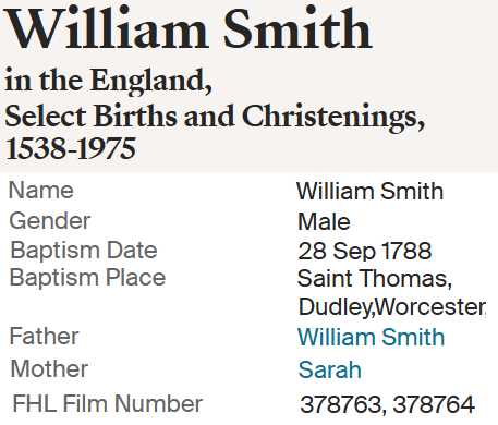 | 5 | James Smith | 04 JAN 1807 Saint Thomas, Dudley, Worcester, England |