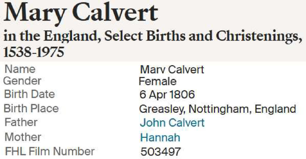 Mary Cook (previous marriage to Brown) Marriage to John Calvert