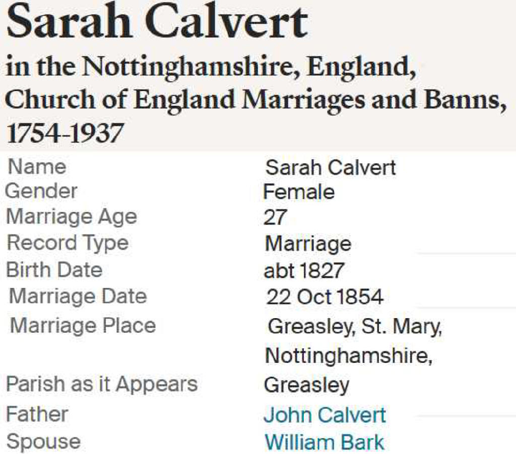 | Sarah Calvert | 1827 | 1856 | William Bark 1854 | |