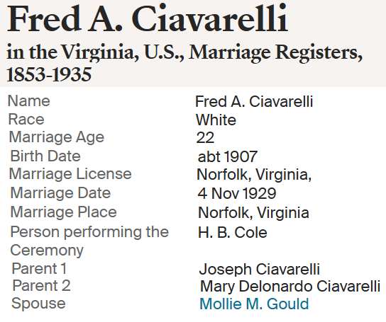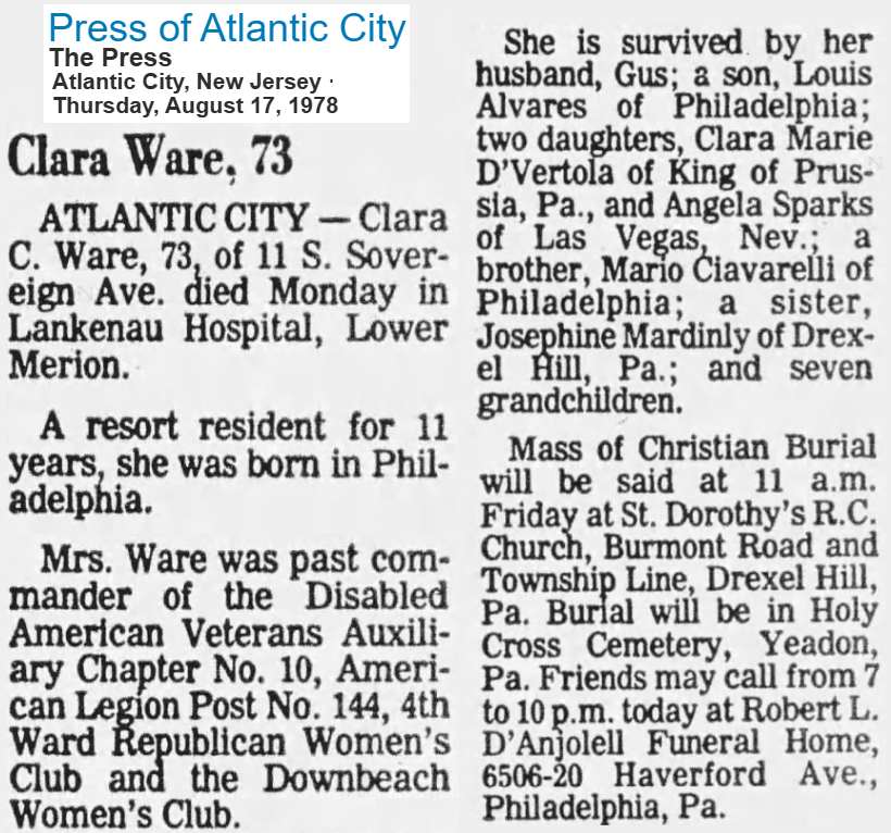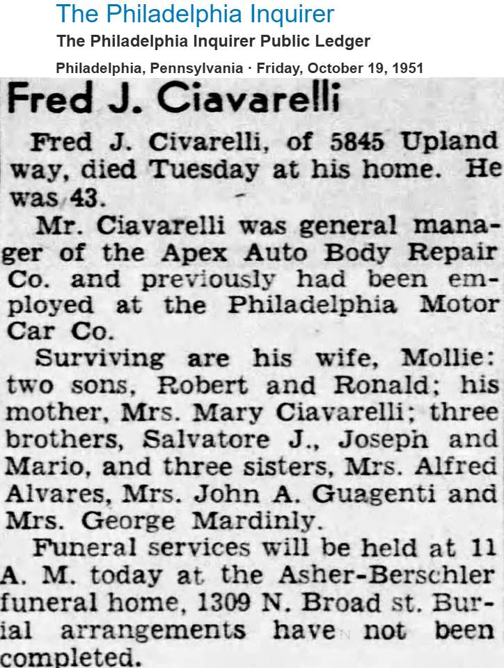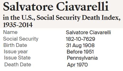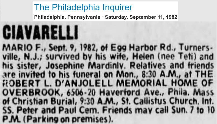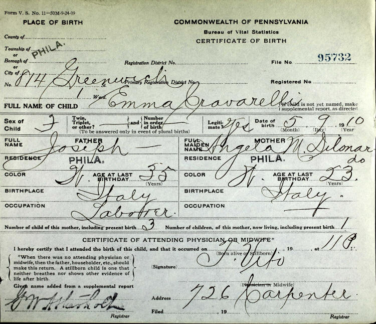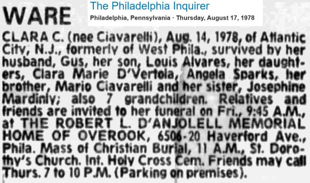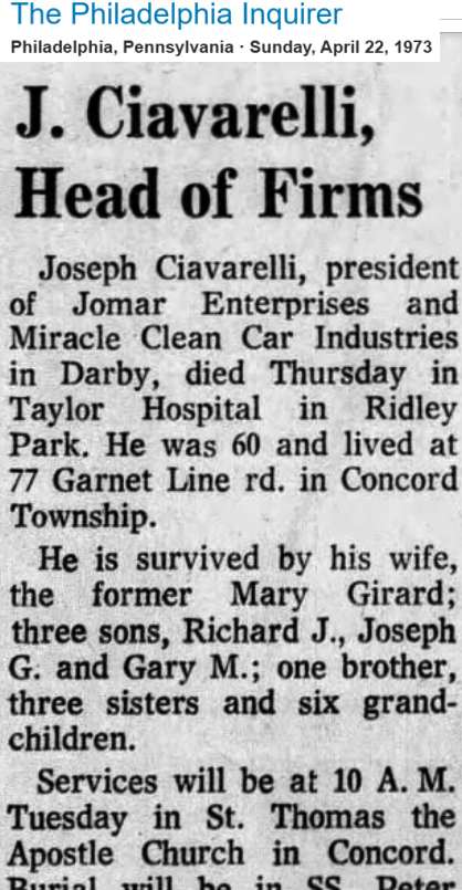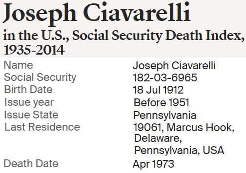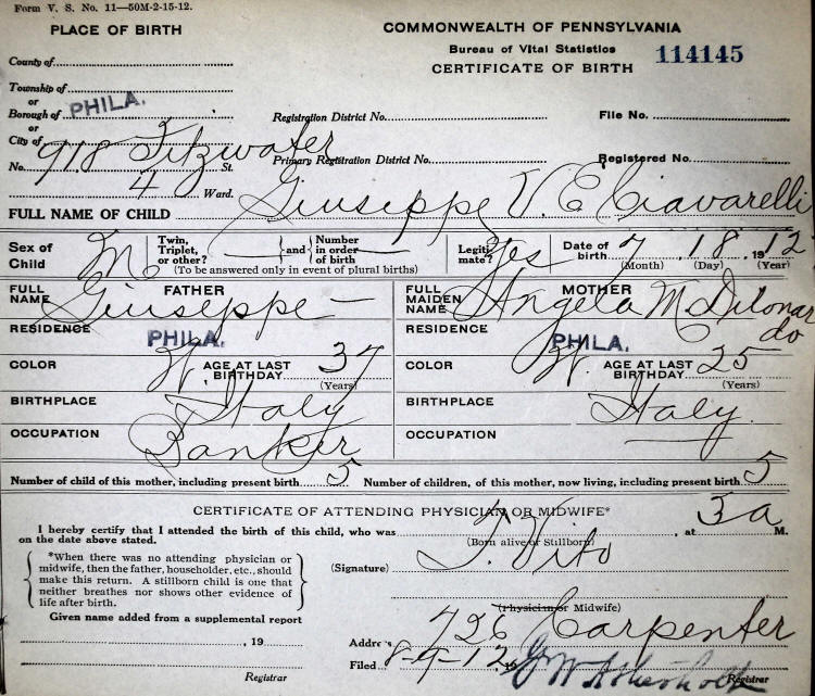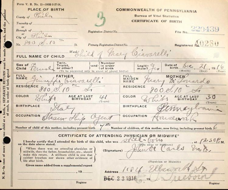 | 7 | ? Ciavarelli (Stillborn? - Np Name) |