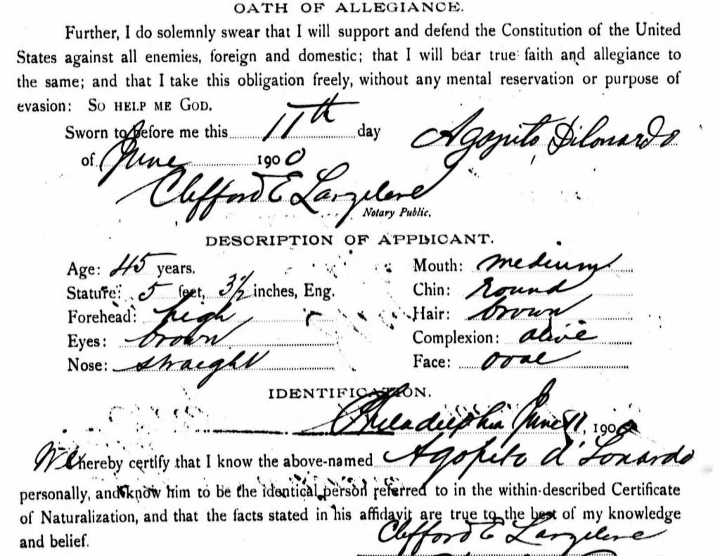 Agapito Dilonardo's Death Certificate, Pennsylvania |
