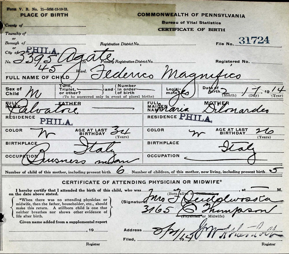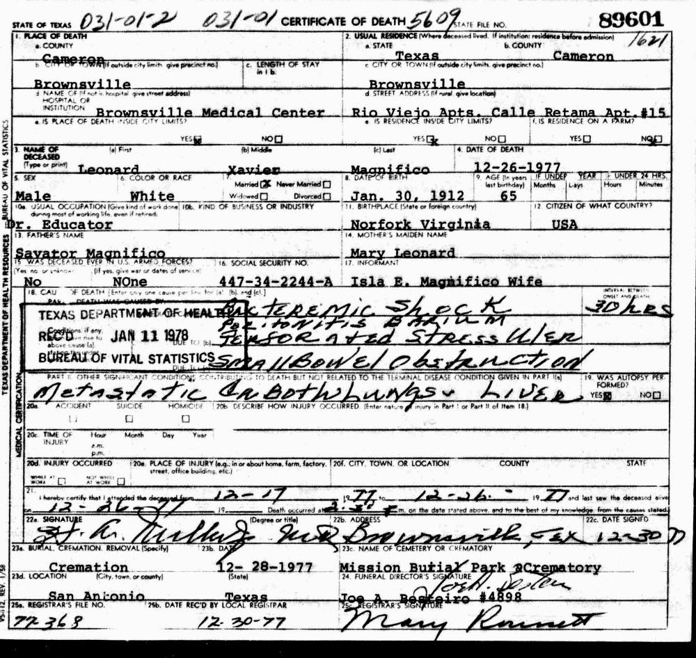 Generation Saverio (Xavier?) Magnifico Genevra? Granata |