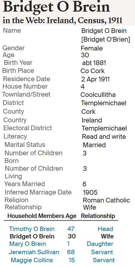 Baptism Record for Timothy O'brien, (twin of Denis above) 19 March 1881 |