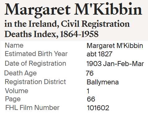 15 May 1864 Ahoghill, Antrim, Ireland |