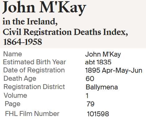 25 Mar 1865 Broughshane, Ant, Ireland |