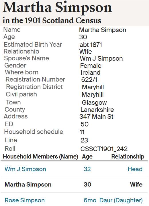 | Rose Simpson | 1900 Glasgow, Lanarkshire, Scotland |
