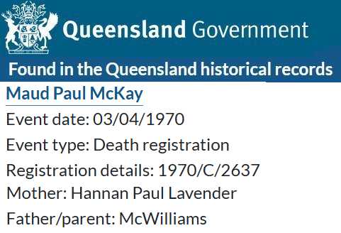 Born: 20 Feb 1888 Died: 19 Mar 1969 in, Walkerston, Queensland, Australia