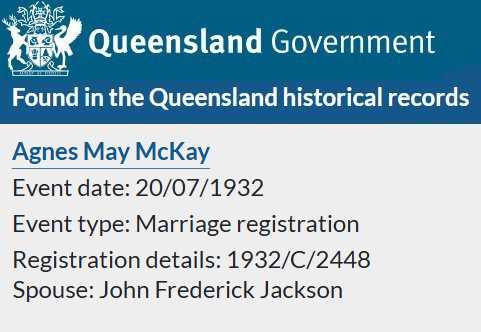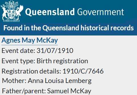 | Agnes May McKay | 7 Jul 1910 | 12 Dec 1997