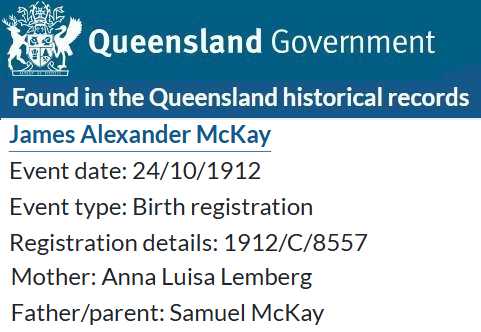 | James Alexander (Alex) McKay | 24 Oct 1912 |