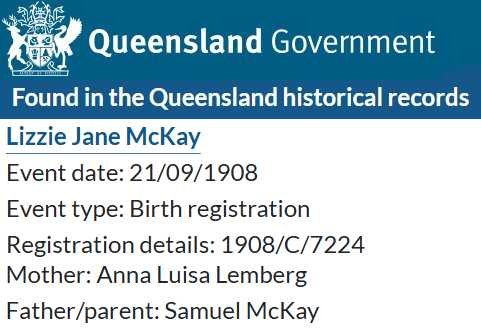 | Lizzie Jane McKay | 21 Sep 1908 | 27 Jul 1943