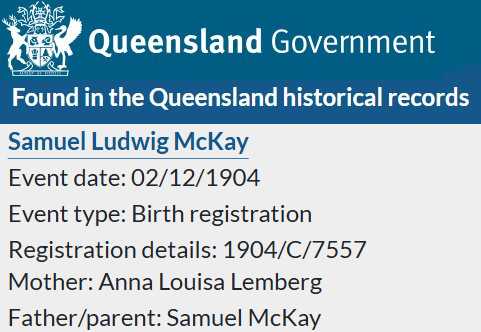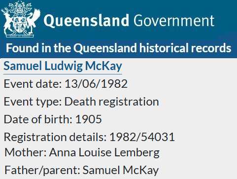 | Samuel Ludwig McKay | 2 Dec 1904 | 13 Jun 1982
