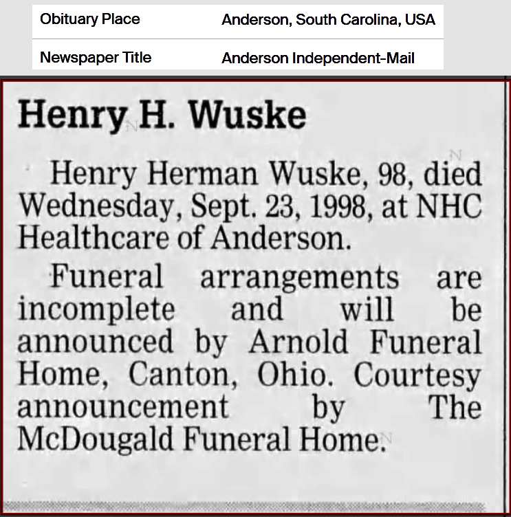 | Henry Wuske (Grandson) | 6 | - | Ohio | |