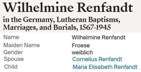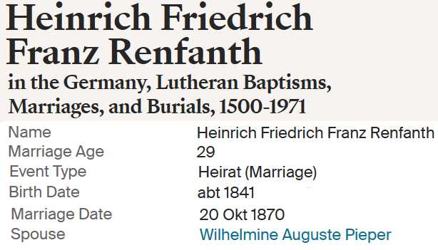 | Heinrich Friedrich Franz Renfandt | 1841 | Wilhelmina Piefer, 1870 | ||