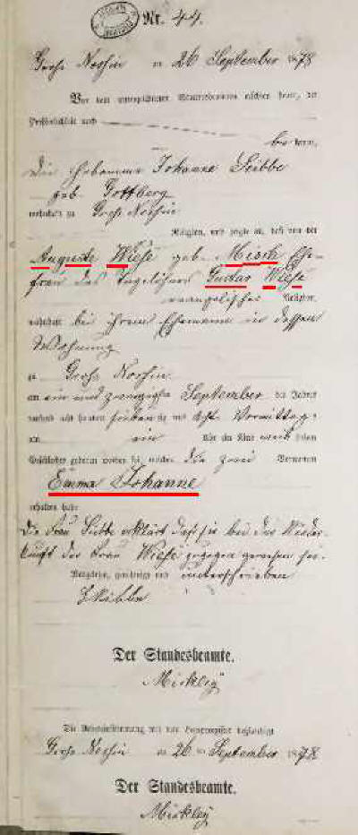 | Emma Johanna Wiese | 21 Sep 1878 Gross Nossin |