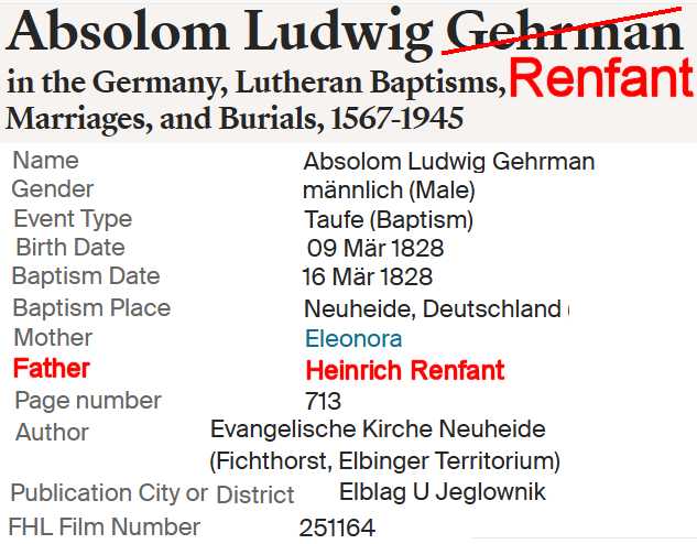 Baptism Record 1828 - Absolom Ludwig Renfandt -