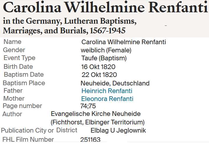| C7 | Cornelius Ernst Renfandt | 13 Mar 1816 Evangelische Kirche Neuheide (Fichthorst, Elbinger Territorium) |