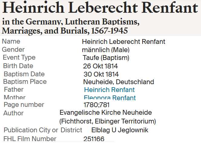 Baptism Record 1814 - Heinrich Lebrecht Renfandt