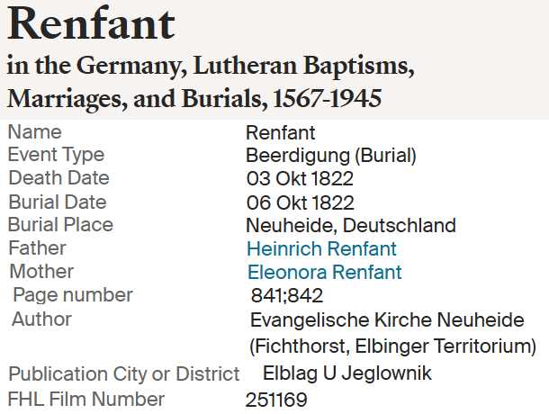 | C11 | Unnamed Renfandt | 1822 | 3 Oct 1822 Evangelische Kirche Neuheide (Fichthorst, Elbinger Territorium) |