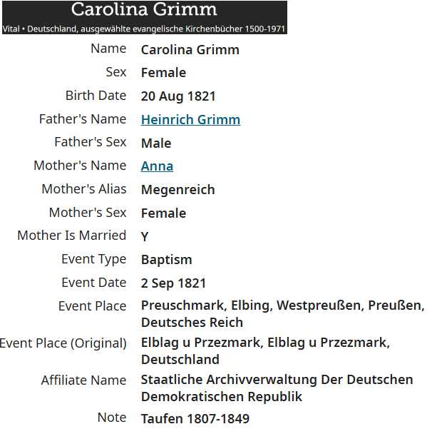 Heinrich Grimm, 1786 - ?? Anna Megenreich M: 1808 |