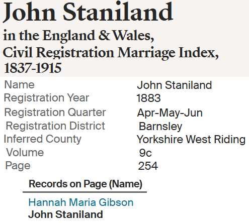 | Hannah Maria Gibson | 06 Sep 1862 Worsborough, Yorkshire, England |
