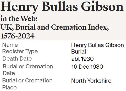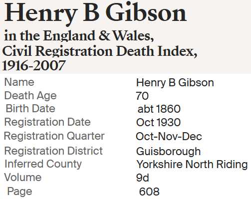 | Henry Bullass Gibson | Sep 1860 Worsborough, Yorkshire, England |