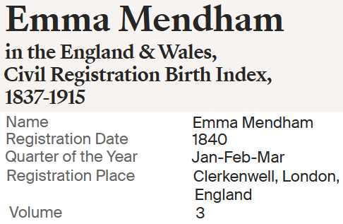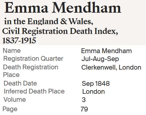 | Emma Mendham | 1840 | Before 1851 (1848?) |