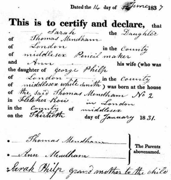 | Sarah Mendham | 13 Jan 1831 | |||