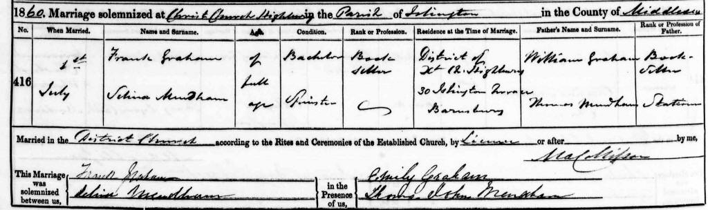 19 Jun 1833 | Mar 1919 ? | Francis Frederick Graham 1 Jul 1860 |