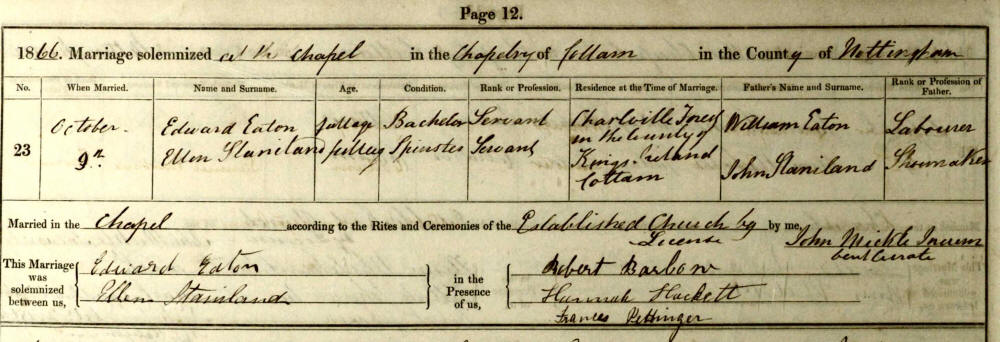 Edward Eaton 9 Oct 1866 |