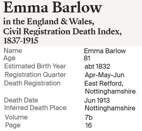 Robert Barlow 14 Mar 1853 East Retford District, Nottinghamshire |