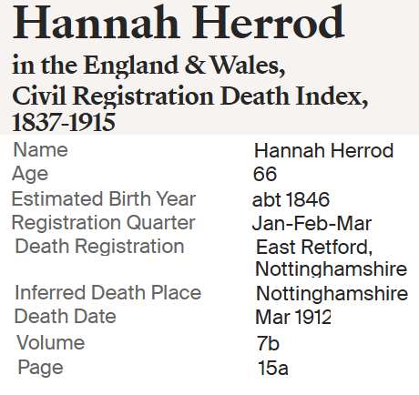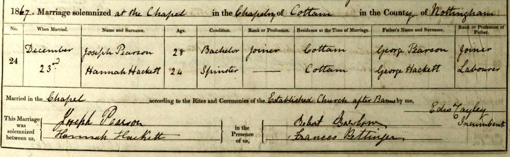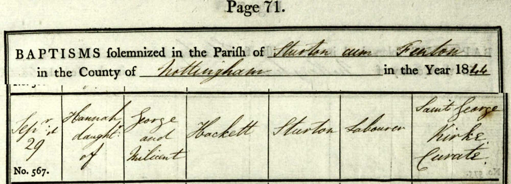 | Hannah Hackett | Bap 29 Sep 1844 Sturton Cum Fenton, Nottingham, England |