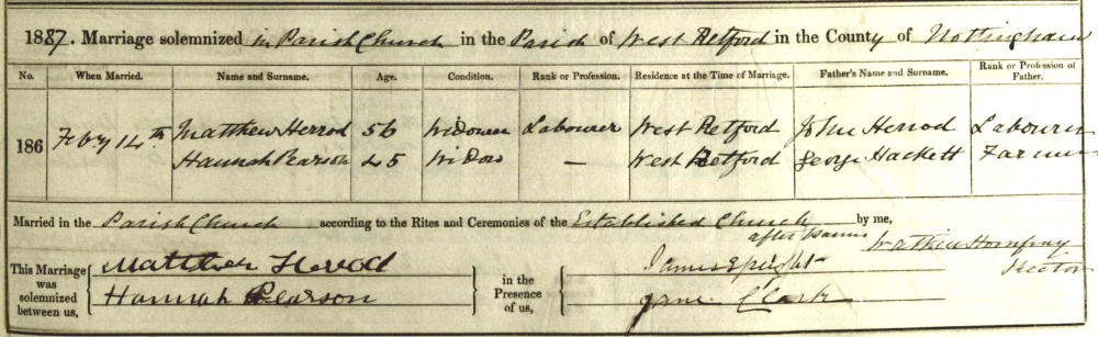 9 Oct 1866 Mathew Herrod, 14 Feb 1887 |