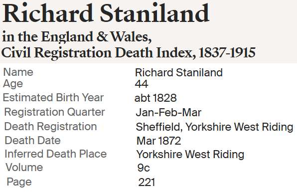 | 1 | Richard Staniland | 15 OCT 1827 Sturton Cum Fenton, Nottingham, England |