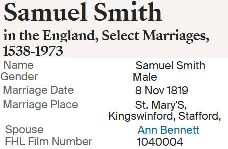 Possible Marriage of William Smith & Sarah Boot![]() |