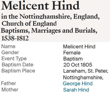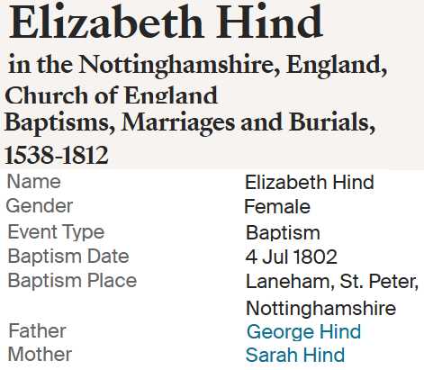 | Elizabeth Hind(s) | 4 Jul 1802 | 6 Jan 1865 | William Dunstone, 1826 | |