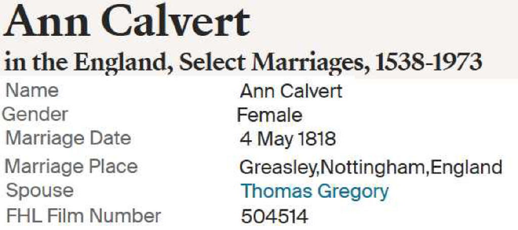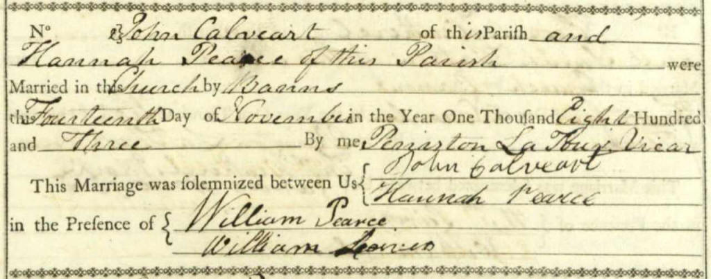 Hannah (Peace) Calvert Marriage: 14 Nov