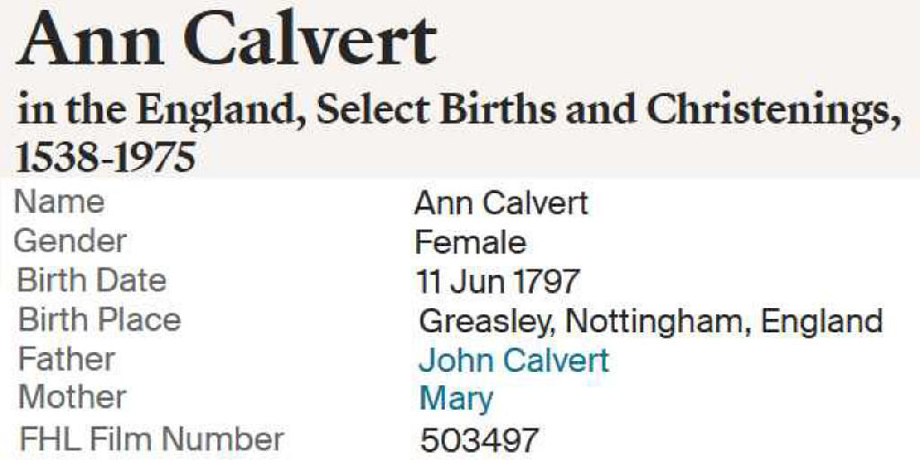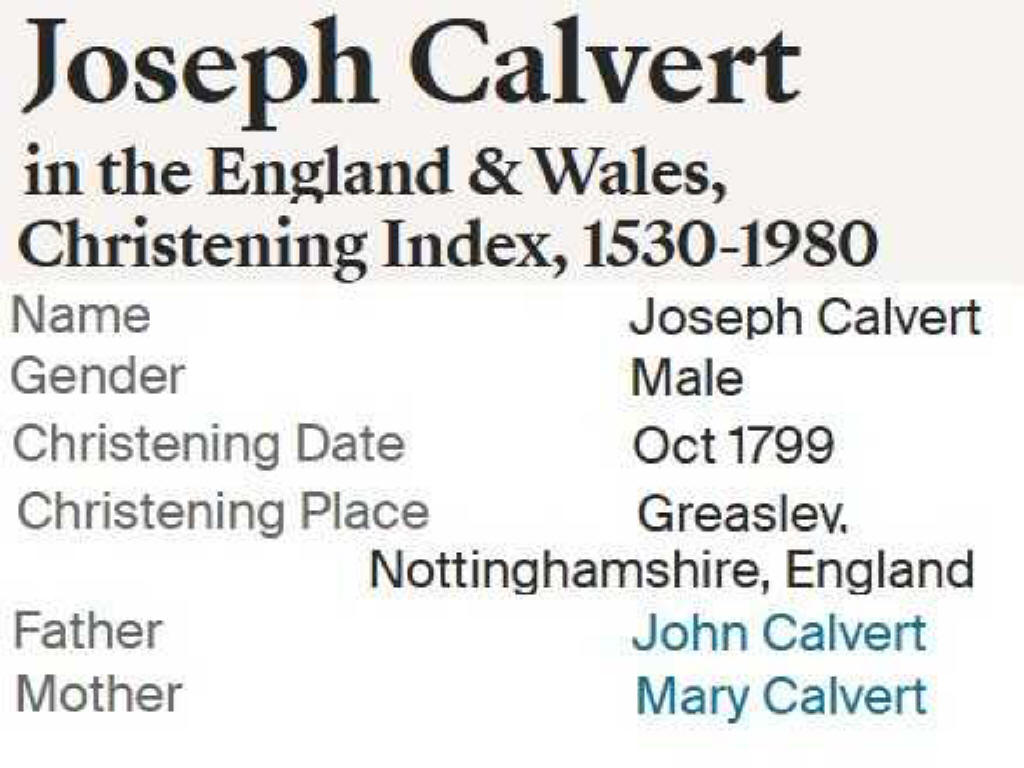 | Children of John Calvert and Mary Slater Calvert |